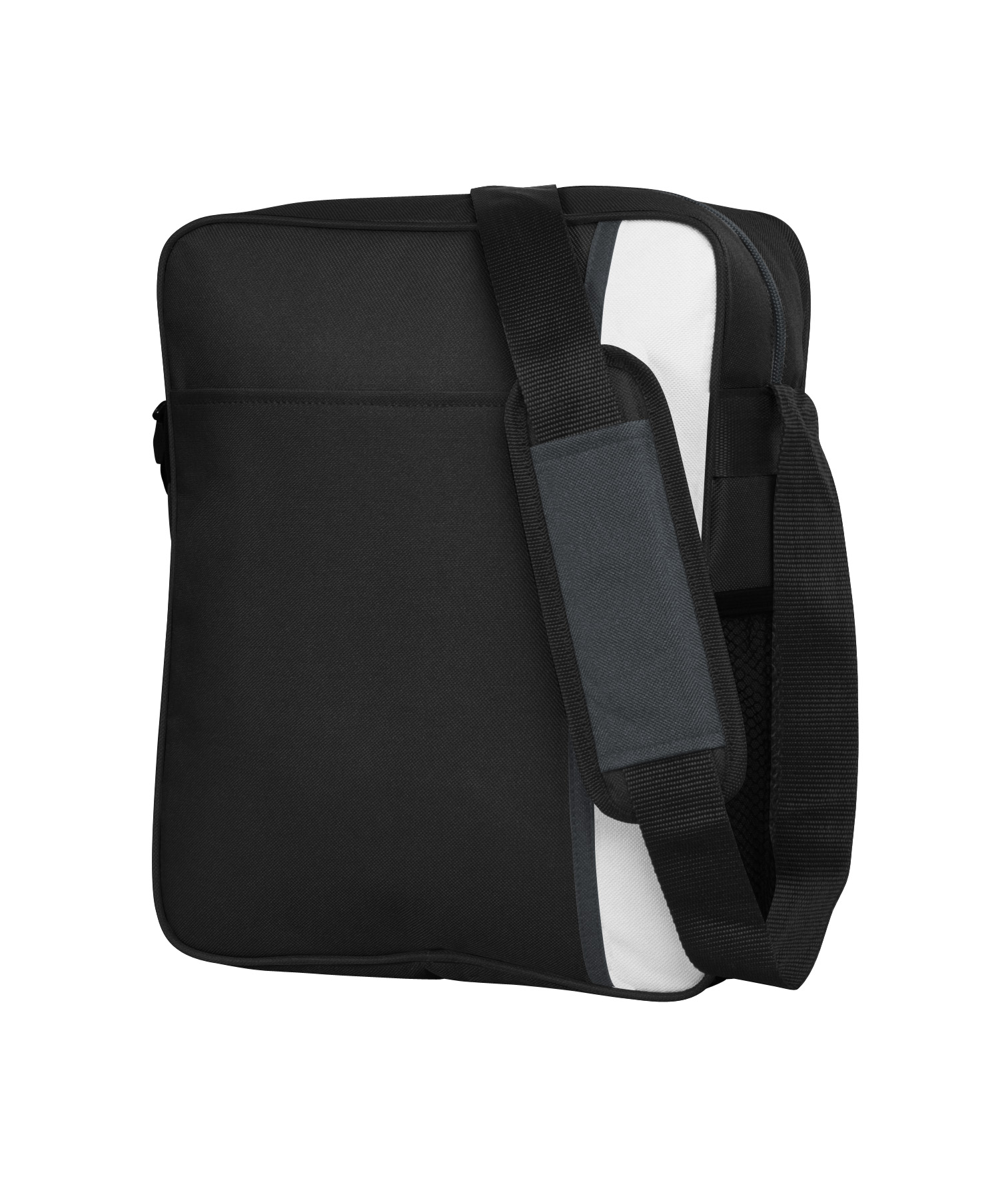 Main compartment with double puller. Foam insulated with silver PVC lining and internal semi attached divider.Front slip pocketAdjustable shoulder strap with shoulder pad.Side elastic mesh bottle pocketMultiple pen holders on side.Business card holder on back.