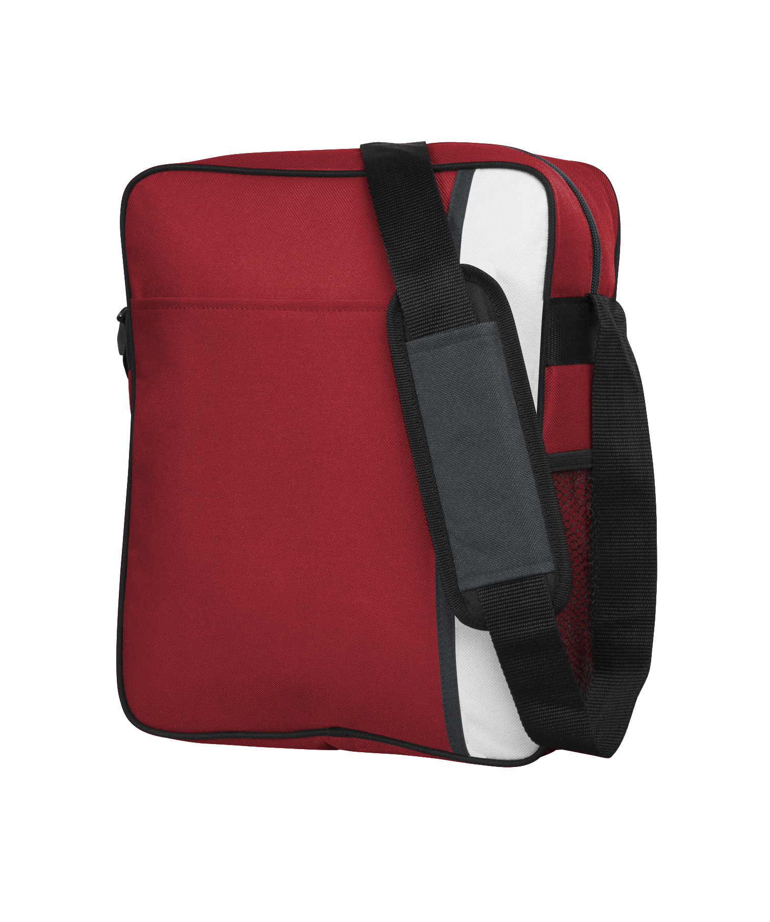 Main compartment with double puller. Foam insulated with silver PVC lining and internal semi attached divider.Front slip pocketAdjustable shoulder strap with shoulder pad.Side elastic mesh bottle pocketMultiple pen holders on side.Business card holder on back.