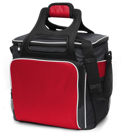 Large zippered main compartment Thick foam insulation Heat sealed silver PVC liningStrong moulded EVA handles - velcro wrapCan hold 24x 375ml cansDouble zip pullers on main compartmentFront gusseted zippered compartmentTwo side elastic mesh pocketsAdjustable shoulder strap with rubber shoulder pad Business card holder on back