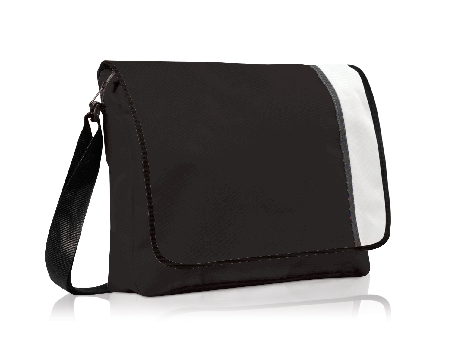 Zippered main compartment.Front flap with Velcro closure.Adjustable shoulder strapBusiness card holder on back.