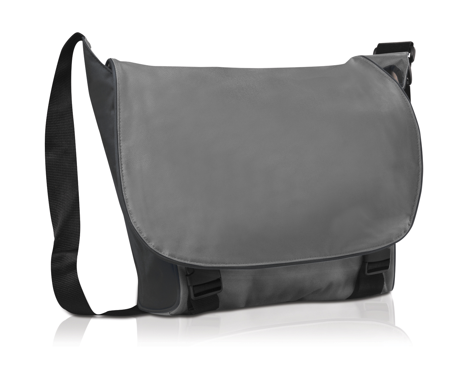 Padded main compartment with double buckle closure; Fits most 15" laptops.