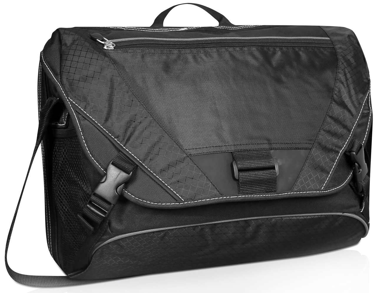 Large compartment under the front flapPadded main zippered compartmentFits most 17” laptopsOpens flat to expedite with airport security checksZippered front flap with dual buckle closure, organiser panel underneathTwo internal pockets designed for tablets and accessoriesAdjustable shoulder strap with removable comfort-sliderBusiness card holder45w x 17d x 34h cm25 Litre