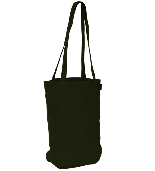 Large main compartmentTwo carry handlesBusiness card holderRecycled print and woven label