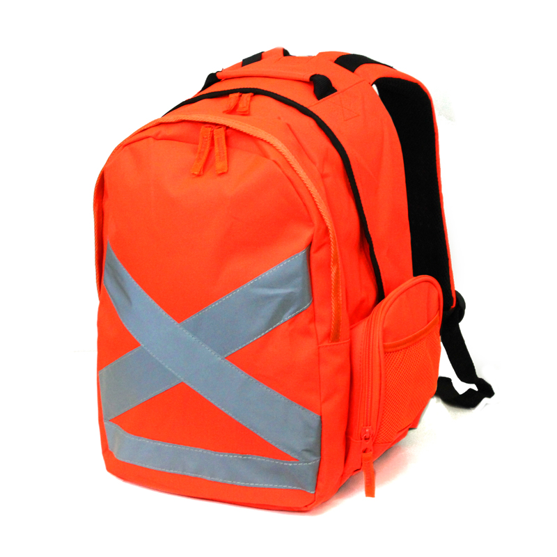 Large main compartment with storage pocketsHigh Visibility worksite backpackQuality back and shoulder paddingFront pocket with organiser panelSide mount utility zip pocketSide mesh pocket for water bottleReflective tape detail with room for decoration