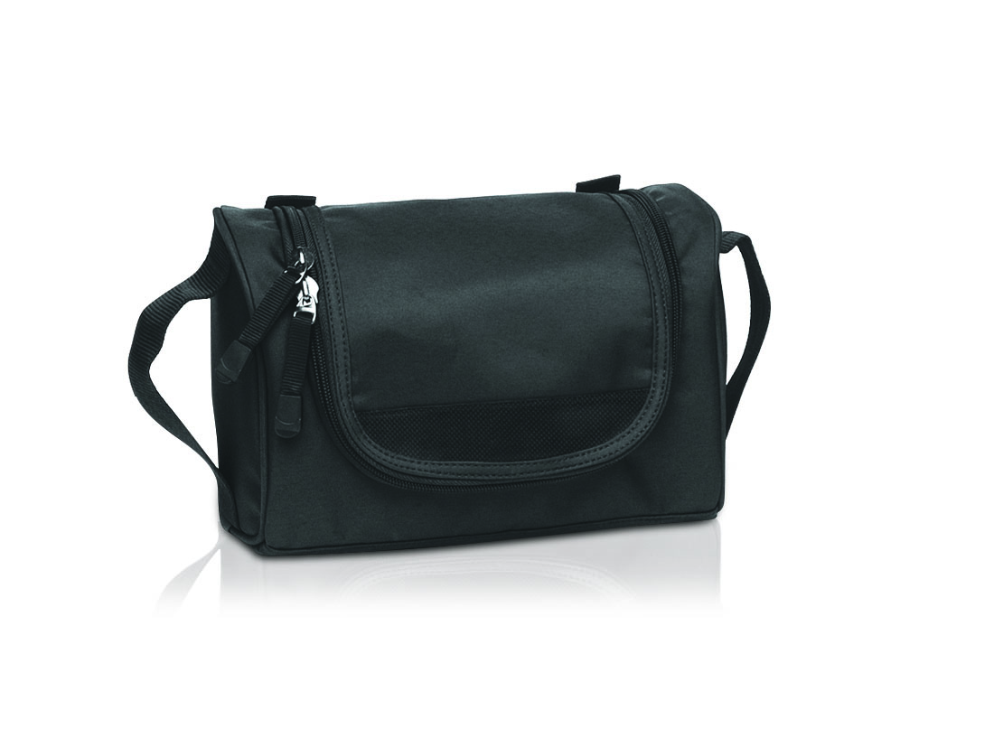 Large main compartment wtih double zip pullers. Internal zippered mesh pocket under flap. Two internal side elastic mesh pockets. Multiple internal elastic pockets.Side grab handles.Webbing and Velcro hook for hanging.